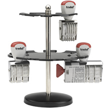 The Trodat stamp rack holds up to 8 traditional rubber hand stamps (for example classic line products) on a circular rotating holder. Comes in black with grey holder. more…